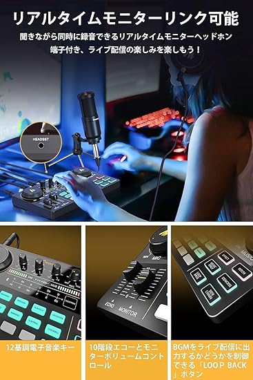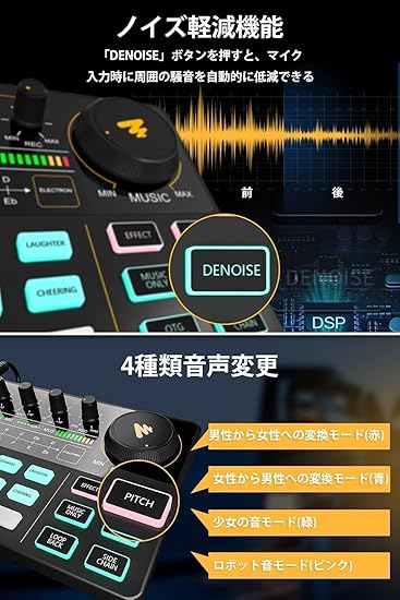 【直感的な操作感&カスタム効果音】ボタン1つで、あなたの声を変化させたり、多くの効果音を追加したりできます。オープニング、笑い、ブーイングなど8種類プリセットされた効果