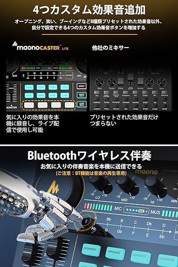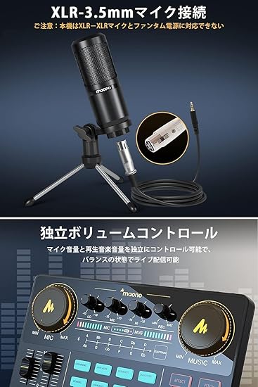 【一台で完了&操作簡単】MAONOCASTER AU-AM200S1は、オールインワンポータブルオーディオミキサーセットです。ライブ配信を簡単に始めてみたいけどどんなデバイスを買えば良いかわからない場合に最適なデバイスです。複雑な操作が必要なく、価値のあるコンテンツを提供し、視聴者とのコミュニケーションに集中することができます。