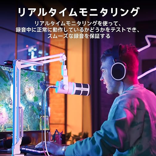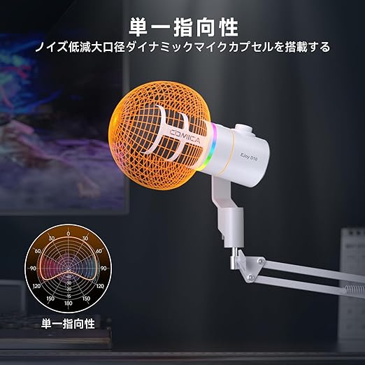 Comica ダイナミックマイク USB/XLRデジタルとアナログデュアル出力 ゲーミングマイク 単一指向性 ブームアーム付き RGBライティング ノイズ軽減 ライブ配信 ゲーム実況 在宅勤務 ポッドキャスト ストリーミング ナレーション録音に最適 PC/PS4/PS5/サウンドカード/オーディオミキサー対応 EJoy D10(白) a