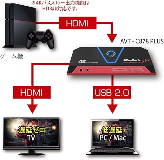 AVerMedia HDMI usb Live Gamer Portable 2 PLUS AVT-C878 PLUS [4Kパススルー対応 ゲームの録画・ライブ配信用キャプチャーデバイス] DV478 macOS a