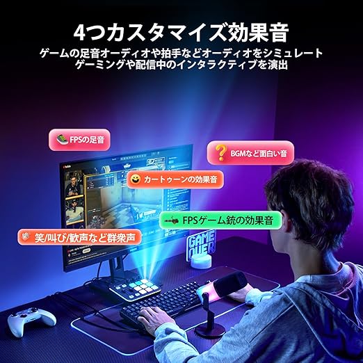 ゲーミングや配信の世界に飛び込むための完璧なパートナー:G1 NEOオーディオミキサーは55dBの高音質プリアンプを搭載しているだけでなく、カスタム音声エフェクトと魅惑的なRGBライティングを統合し、ゲーミング、ポッドキャスト、配信など新登場個人メディア活動に没頭できます。コンパクトなデザインと使いやすい操作パネルにより、ゲーム体験がより楽しく、より簡単になり、勝利への近道を提供します。