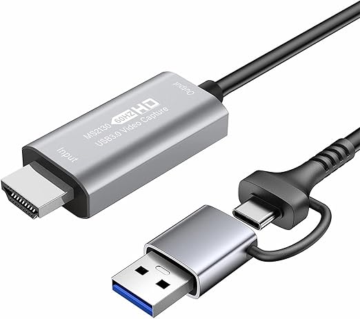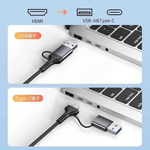 USB HDMI ビデオキャプチャ USB3.0 4K入力 1080P@60Hz YUY2出力 USB Type A&Type C 2in1 PCゲーム/Switch/PS5,4/Xbox/カメラ/TVの映像を録画・ライブ配信用 キャプチャーボード Windows/Mac OS/Android対応 a