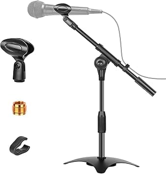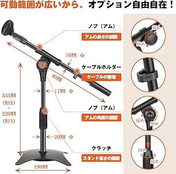 EMART マイクスタンド 卓上 角度、高さ調節可能 伸縮 折り畳み式 安定 生放送実況 配信 講演 収録用 クリップ、変換ネジ付き a