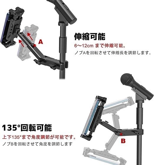 Tendak タブレットホルダー マイク音楽スタンド 回転調節可能 iPadマイクスタンド クランプ式 ホルダー 4.7〜13.5インチ対応 10インチ タブレット/スマートフォン兼用 マイクホルダー スマホスタンド a