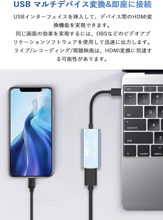 【TYPE-C HDMIキャプチャーボード】この HDMI ゲーム キャプチャは、ほとんどのデバイス コンバーター (スマートフォン、ゲーム コンソール、カムコーダー、テレビ、DVD など) に接続して、PC/ラップトップを使用して録画およびライブ ストリームを行うことができます。 既存の動画編集ソフトに適しており、映像は鮮明で遅延がありません。注:車の画面に使用しないでください、使用できません。この製品はTYPE-C HDMI変換録画に属しており、使用する場合はOBSを録画するための指示に従っ