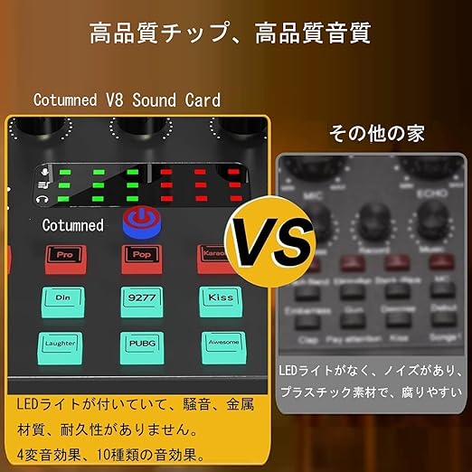 【日本語改良版DSP&操作簡単】日本語 PA音響機器 Cotumned Audio Mixerカラオケポータブルオーディオミキサー 金属v8sサウンドカード ボイスチェンジャー ライブ配信を簡単に始めてみたいけどどんなデバイスを買えば良いかわからない場合に最適なデバイスです。複雑な操作が必要なく、価値のあるコンテンツを提供し、視聴者とのコミュニケーションに集中することができます。