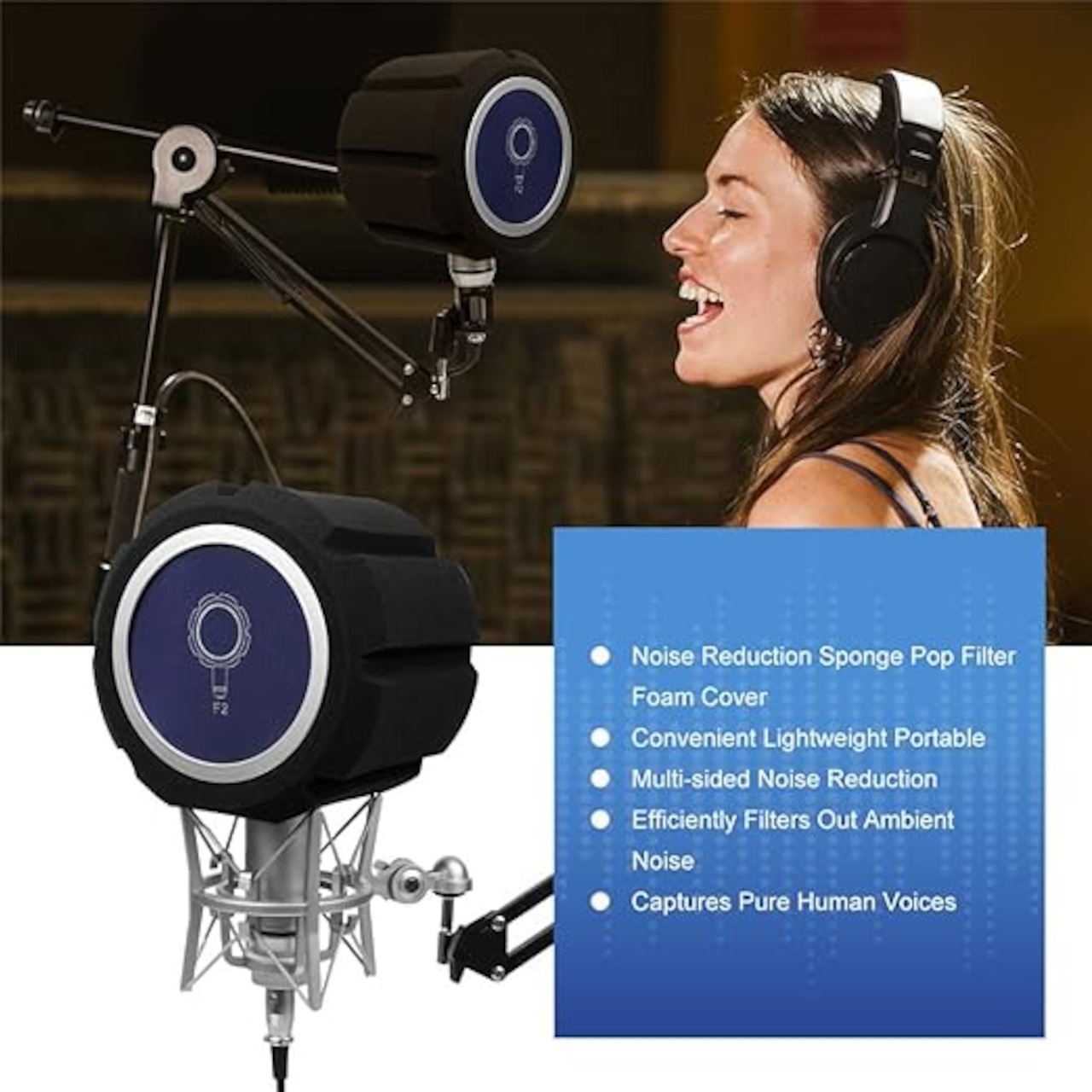 【ノイズキャンセリングスポンジ】F2マイクポップフィルターは、高品質のノイズリダクションスポンジで設計および処理されたノイズリダクションシリンダーです。 ノイズリダクションスポンジを通して周囲のノイズを吸収して反射させることで、マイクを静かな録音スペースに隔離することができ、録音中や歌唱中にマイクが自分の声を特別に録音