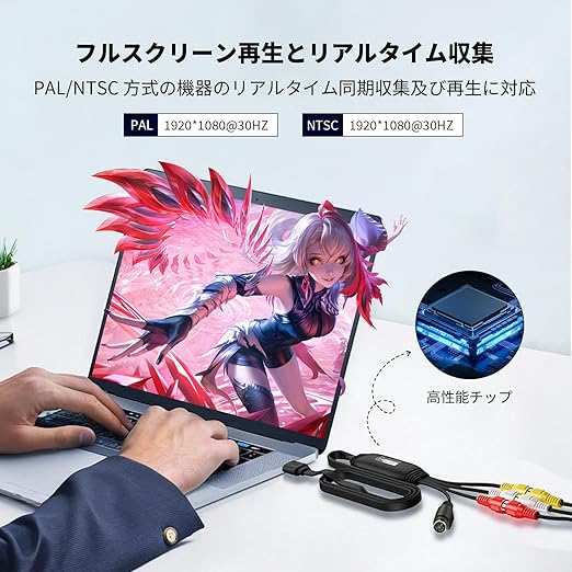 USB2.0 ビデオキャプチャーカード|1920×1080p Full HD対応|VHS/DVD/8mm/ビデオカメラ→PCデジタル化|RCAコンポジット入力|Mac & Windows 10/11対応|簡単ダビング&録画|プラグ&プレイ|付属ソフトウェア付き a