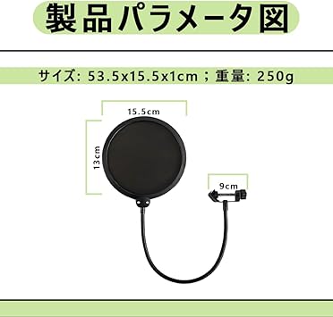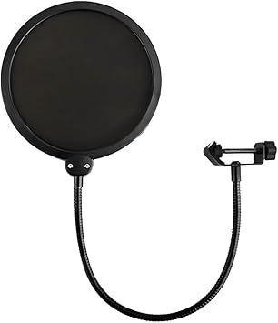 マイクポップフィルター 反射フィルター 録音品質を向上 直径15cm ボーカル録音に最適 自宅録音 録音とストリーミング ライブ放送 自宅録音 二重構造 クリアな録音 360度調整可能 丸型 ブラック a