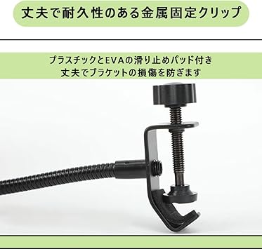 【頑丈で耐久性のある金属固定クリップ】プラスチックとEVA滑り止めパッドが付いており、ブラケットを傷つけることなく安定して丈夫です。強くて柔軟なロングネックブラケットがフィルターヘッドの重量を支え、取り付け後の安定した使用を保証します。
