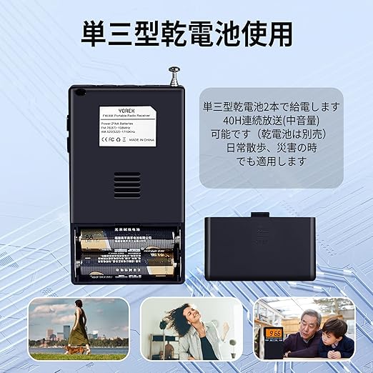 YOREK AM/FM高感度受信ポケットラジオ 単3型乾電池給電 スリープ機能付き ワイドFM対応小型ラジオ ステレオイヤホン付属する(日本語取説付き) a