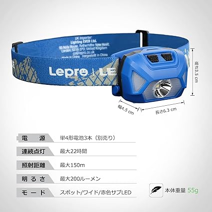 Lepro ヘッドライト LED ヘッドランプ 高輝度 ledヘッドライト 電池式 2個セット 6種点灯モード【赤&白ライト/スポット・ワイドLED搭載/SOS点滅/実用点灯22時間/IPX4防水/角度調整可/CE ROHS認証済み】 釣り 登山 キャンプ アウトドア 災害 停電用 散歩 作業 小型 夜釣りに最適 ヘッド ライト(ブルー) a