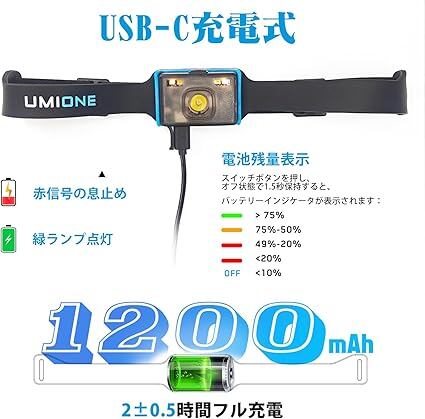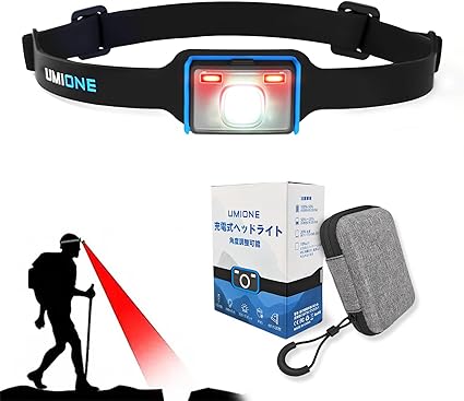 UMIONE 350ルーメンの高輝度LEDヘッドランプ、Type-C充電、60°角度調整、大雨でも正常に使用でき、読書時に暖かい光も提供でき、便利なキャリングケースが付属しています。 a