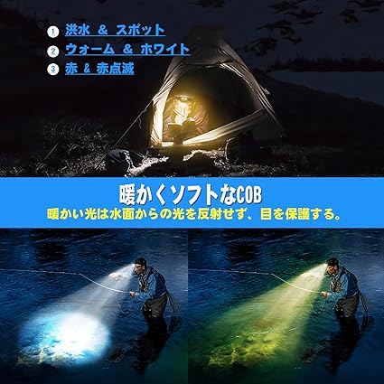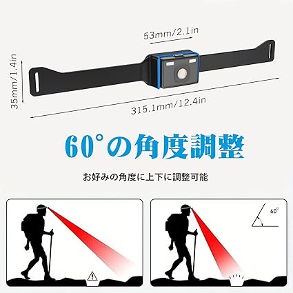 【明るさと安全性】 高輝度LEDライトを装備し、明るさは350ルメンで、夜間の活動に明確な視界を提供します。最大照射距離は約150メートルで、照射角度を60度まで調整可能で、すべての角が明るく見えるようにし、夜間の作業と活動の安全性を高めます。
