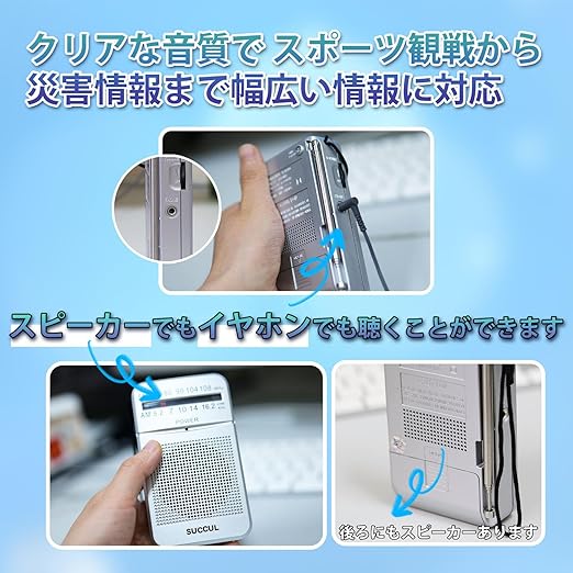 SUCCUL ポケットラジオ FM AM ワイドFM対応 単3電池 ミニーラジオ 小型ラジオ 携帯ラジオ 通勤ラジオ 高感度 ポータブル 防災ラジオ スピーカー付 a