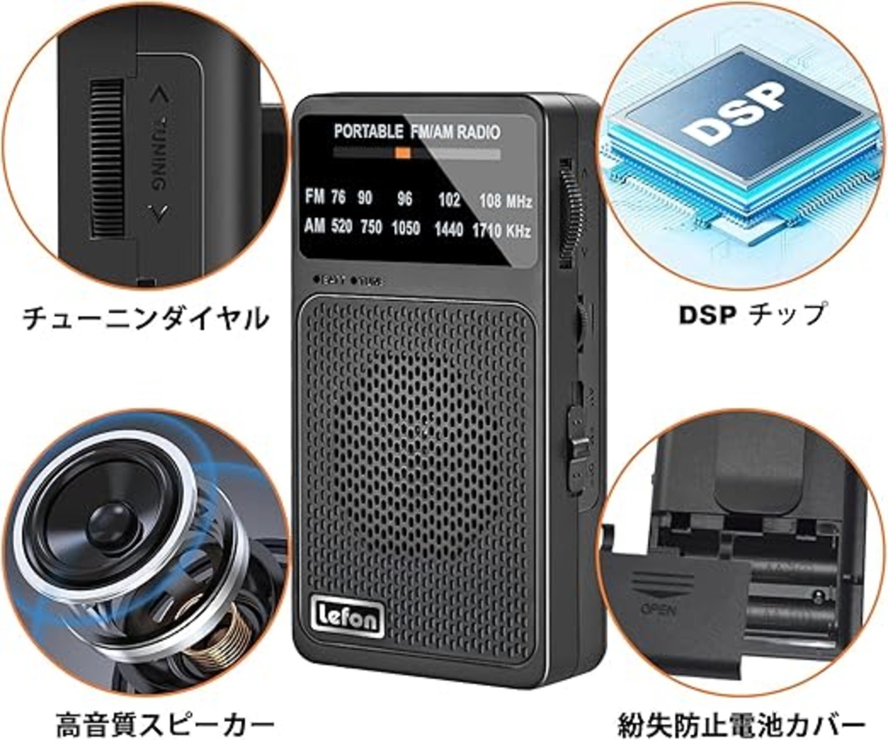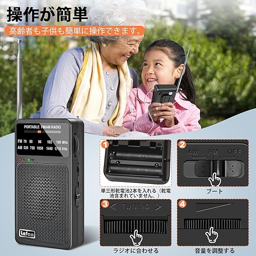 Lefon ポケットラジオ 小型 高感度 軽量 防災 地震用 携帯 AM/FM ワイドFM 乾電池式 スピーカー搭載 操作簡単 日本語取扱説明書付き (ブラック) a