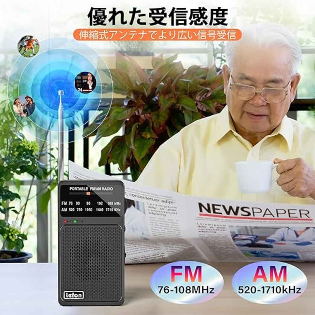【コンパクト&専用バッククリップ】小型で、使いやすい超薄型、小さい体で大音量、持ち運び便利なAM FMラジオです。クリップ付きでベルトなどに簡単に装着できます。家/公園/畑仕事どこても適用で、もっと遠い郊外、キャンプ、登山、海に作業の人に天候・ニュースを聴くのにも適用です。