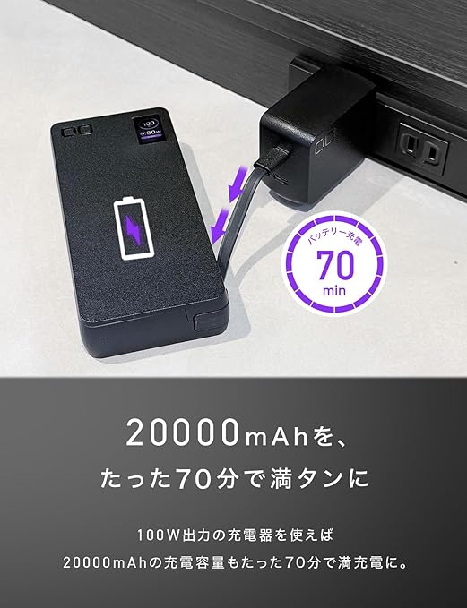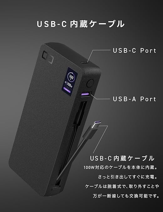 CIO SMARTCOBY Pro CABLE 100W 20K モバイルバッテリー 100W ケーブル内蔵 大容量 20000mAh [脱着式ケーブル] PD 高出力 CIO独自技術 NovaIntelligence NovaSafety2.0搭載 ノートパソコン用モバイルバッテリー MacBook Pro iPhone Android a