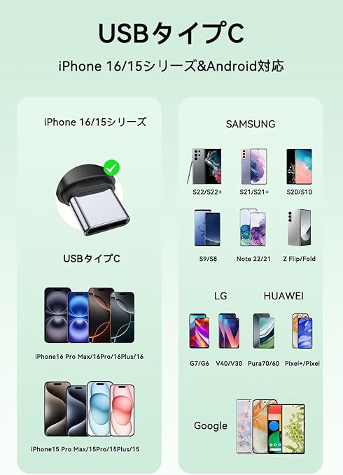【Type-Cポート対応 iPhone16/15 & 主要Android機種に】 Type-Cポートを搭載し、iPhone16/15シリーズやSamsung Gala