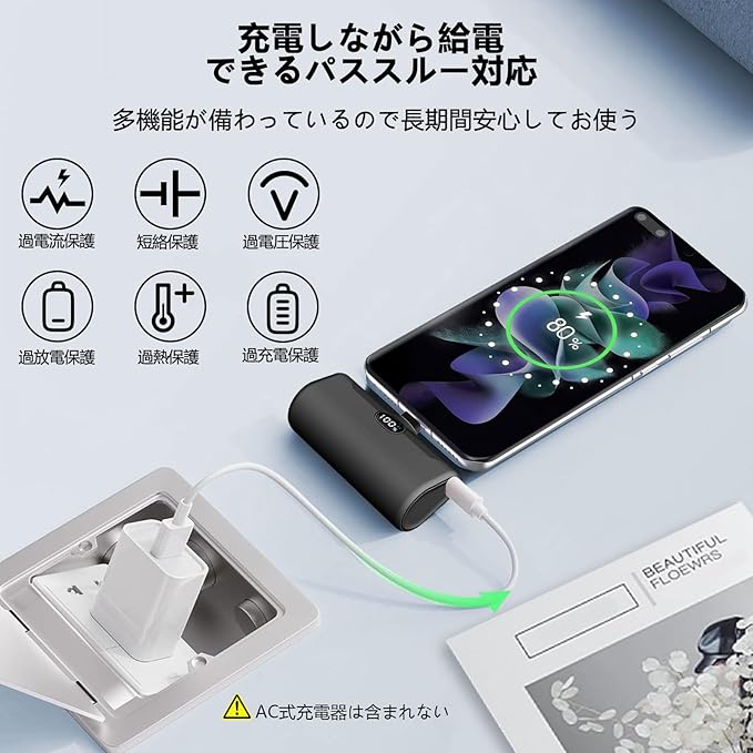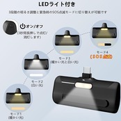 【直接充電&懐中電灯付き】このモバイルバッテリーはAndroidユーザー向けに設計で、差し込むだけで充電でき、USB-Cコネクタ内蔵型のモバイルバッテリーです。「ケーブルを忘れて充電できない…」ということも防ぐことができます。LEDライトは3段階の明るさ調整と緊急時のSOS点滅モードに切り替えが可能です。照明にも自撮りにも使える補光灯としても使えます。暗闇でライトとしても活用できます。遭難など、緊急時には点滅モードにも切り替えれば、声が出ない場合でも居場所を伝えることができます。