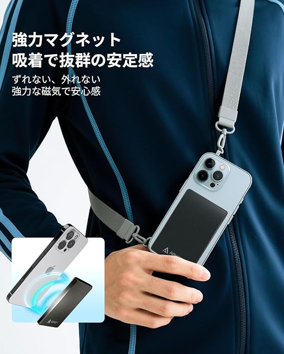 【ワイヤレス充電&超強力なマグネット】超強力マグネット内蔵により、iPhoneやAndroidスマホにしっかり吸着。横向き/縦向きどちらの磁気充電中でも、快適にスマホを使用可能。さらにiPhone