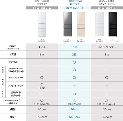 【定格内容積】356L(冷蔵室:204L〈162L / うち、チルドルーム15L〉野菜室:70L〈43L〉冷凍室:82L〈54L〉)※〈〉内は食品収納スペースの目安