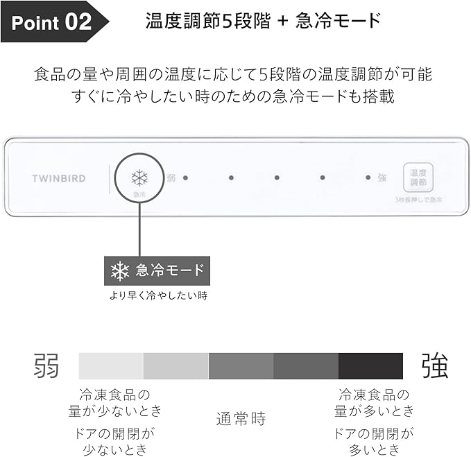 【急冷モードも搭載】温度は5段階に切り替え可能。急冷モー