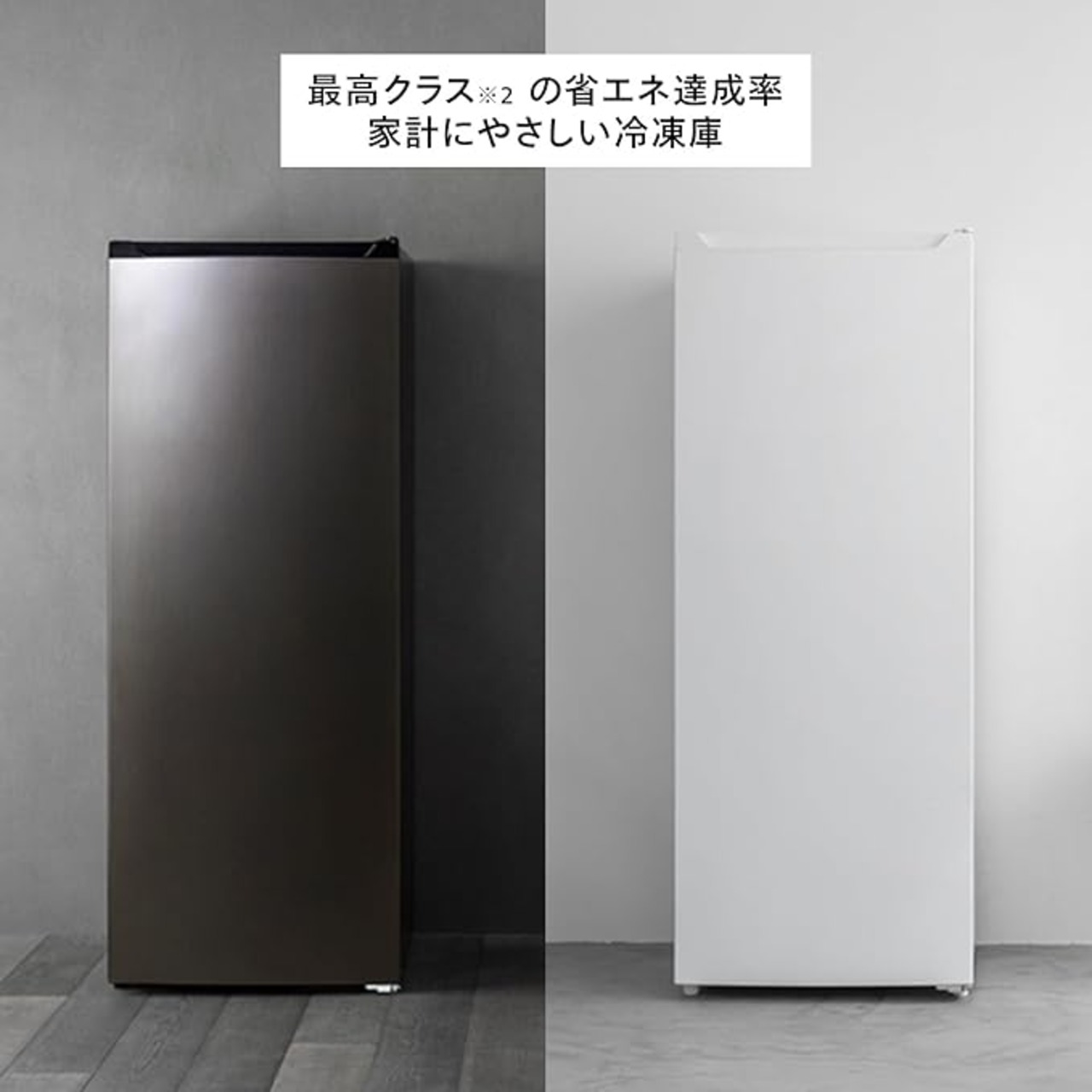 【お部屋に調和する上品な佇まい】キッチン以外のお部屋にも違和感なく置いていただけるように、メタリックブラックを使用した上品な佇まいに仕上げました。霜取り不要のファン式で、面倒なお手入れは不要です。