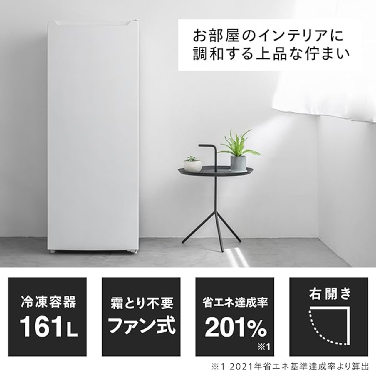 ツインバード 1ドア冷凍庫 幅54cm 161L 右開き HF-E916W ホワイト 大容量 燕三条 省エネ達成率201% セカンド冷凍庫 a