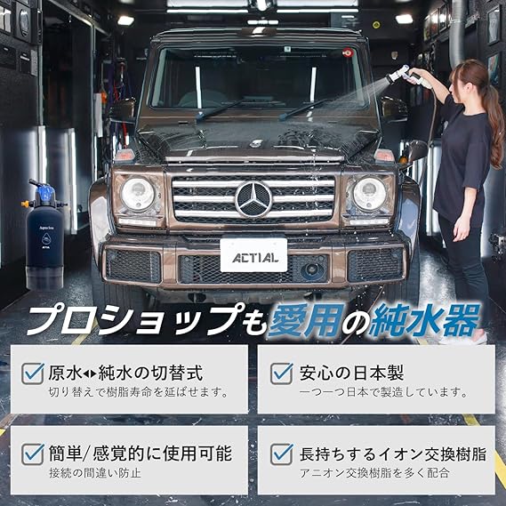 ACTIAL 純水器 切替式 原水 純水 イオン交換樹脂 洗車 10L TDSメーター 専用カバー付き 日本製 1年間保証付き 純水機 a