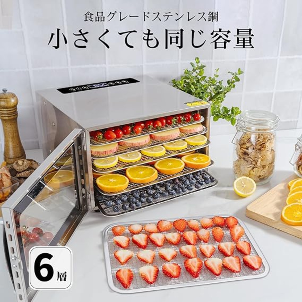 Kwasyo 6層フードドライヤー ステンレス鋼製食品乾燥機 ドライフルーツメーカー 家庭用 30〜90℃幅広い温度制御 タイマー付き 24時間低温35℃保温可能 400W 無添加 野菜 果物 肉 乾燥機 低温発酵可能 ジャーキー 干し芋 手作り レシピ付き a
