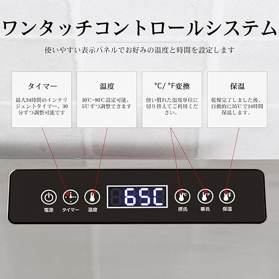❀【簡単操作】ワンタッチで30℃から90℃まで5度ずつ調整でき、幅広い温度帯は様々なフードの乾燥ニーズに適応することもできます。