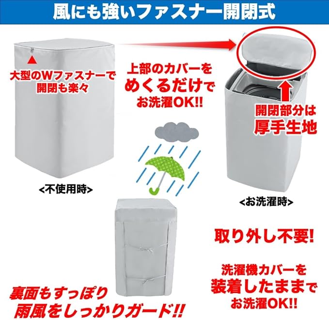 EBISSY 洗濯機カバー 屋外 防水 【 4面 すっぽり 厚手生地 】 シルバーコーティング 紫外線 対策 (ファスナー,Sサイズ:86×52×52) a