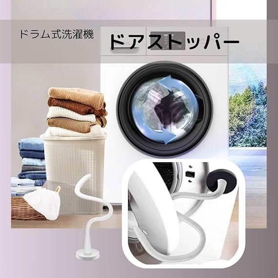 [DeerLuxe] 洗濯機 ドアストッパー ドアホルダー マグネット式 ドラム ドア支柱 ドアハンドル 乾燥 防錆 (ホワイト) a