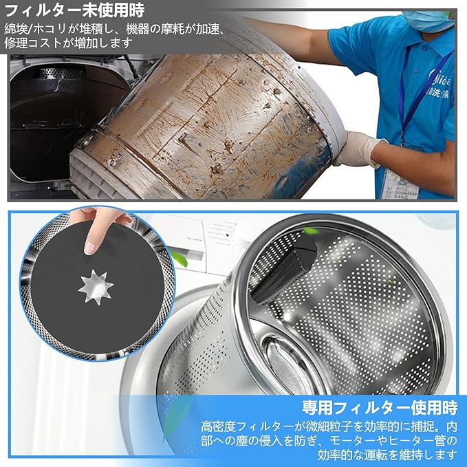 【品質の良さ】:乾燥機 フィルターはエコな防臭紙を採用しており、濾過能力抜群、衣類から落ちる繊維やホコリを確実に捕集します、効果的な防臭と抗菌作用を発揮します。乾燥効率向上とエネルギー節約、フィルターが空気の流れを
