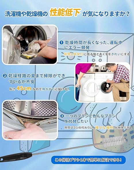 【隙間も奥深くまでしっかり届くロングブラシ】普段のお手入れでは見逃しがちな乾燥経路の奥に潜むホコリやペット