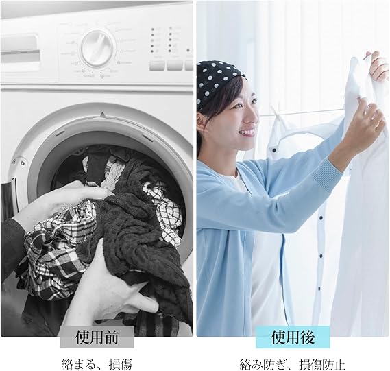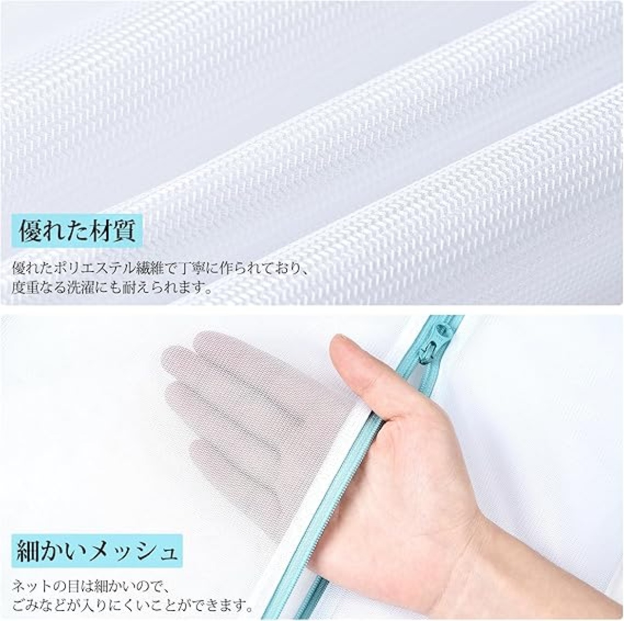 【細かい網目・高耐久性】細かい網目は毛玉やゴミの付着を防ぐとともに、洗濯袋の中の衣類を最大限に保護し、衣類の寿命を延ばすことができます。また、ネット袋はナイロンとポリエステルの合成繊維でできており、引張強度が高く、