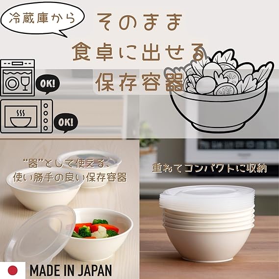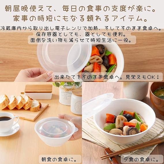 イノマタ化学(Inomata-k) 保存容器 冷蔵庫からそのまま食卓に出せる L ホワイト 日本製 480ml 食器 コンパクト スタッキング 時短 電子レンジ 冷凍 洗いやすい おしゃれ シンプル 1581 a