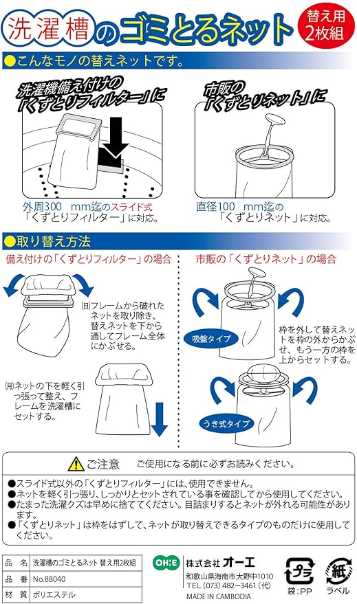 オーエ 洗濯槽のゴミとるネット 替え用2枚組, ホワイト 約13×20cm a