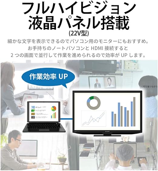 シャープ 22V型 液晶 テレビ AQUOS 2T-C22DE-B フルハイビジョン 外付けHDD裏番組録画対応 2021年モデル ブラック a