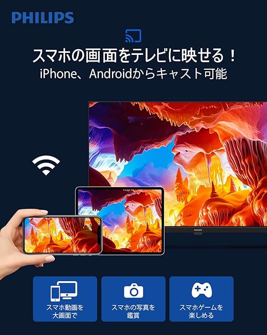 【チューナーレス 32型スマートテレビ】Philipsチューナーレステレビは「地上波などのテレビ番組は見なくなった」「YouTubeやNETFLIX、primevieoなどをスマホで見てる」そんな方へオススメ、アンテナ接続不要のGoogle TV搭載チューナーレステレビ。さまざまなコンテンツに大画面で楽しめます。チューナーレステレビ 32V型は地上波、BS/110℃Sのチューナーは付いておりません。地上波、BS/110℃Sをご覧になる時は別途外付けのチューナーが必要です。