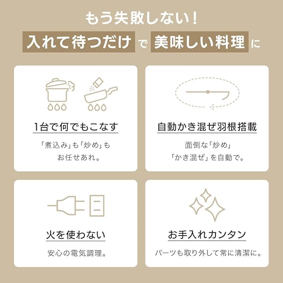 【ほったらかし調理】自動かくはん機能で手間いらず!