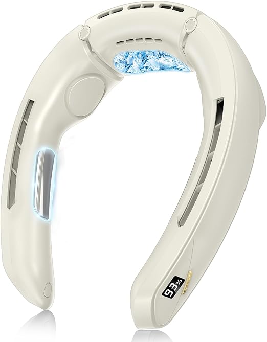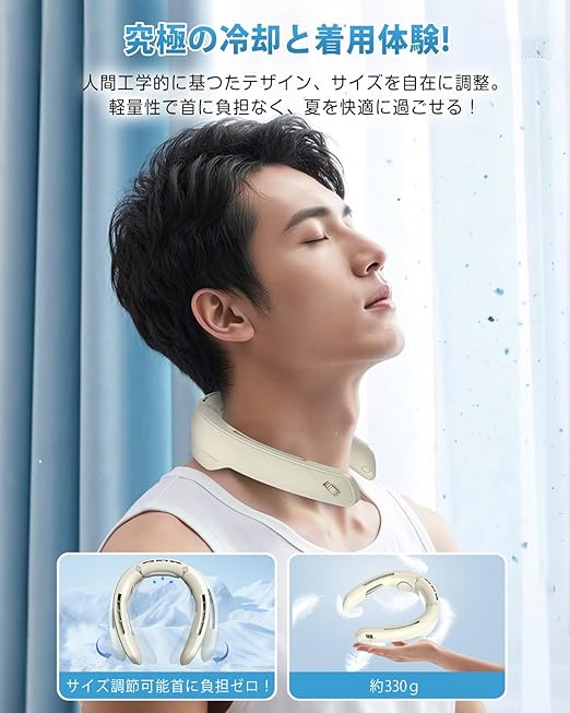 YOIIYO ネッククーラー 冷却プレート 首掛け扇風機 ネックファン 100段階風量調節 4000mAh大容量バッテリー 扇風機 羽なし 急速充電 携帯扇風機 首掛けクーラー 首 冷却 冷やす ネッククーラー ペルチェ 軽量設計 スポーツ/アウトドア/山登り/工事現場/通勤通学/釣り/母の日 父の日 誕生日 (ベージュ) a