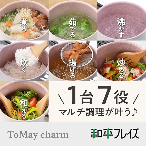 和平フレイズ マルチポット Lサイズ 14cm 3L (4人分まで) ホワイト 7つの使い方 煮る 茹でる 沸かす 炊く 炒める 揚げる 和える IH対応 ふっ素樹脂加工 トゥーメイ チャーム To May charm MB-1614 a