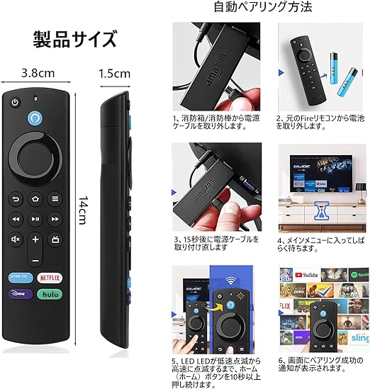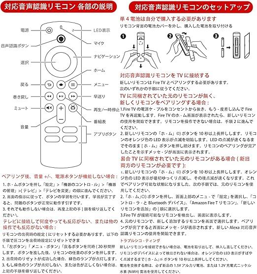 音声認識機能付き:このリモコンは音声コントロール機能を搭載しています。 音声認識ボタンを押しながらリモコンに話しかけることで、見たい番組やアプリを素早く検索・操作できます。