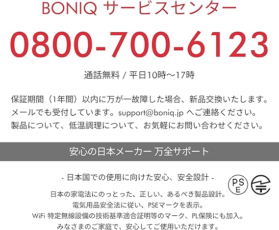 【遂に登場】累計販売台数22万台突破。国内No.1 ブランド BONIQ(ボニーク)の最新モデル、次世代型 低温調理器 - BONIQ 3.0。家庭用としては充分以上のスペックを搭載した低温調理器 BONIQ 3.0と低温調理容器(低温調理コンテナ)、コンテナアクセサリーが一式セットになったスターターセット。ブラック、ホワイトの2カラー、コンテナサイズ 7L、12Lの2サイズ展開。