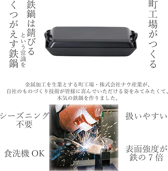 “鉄鍋はサビる”という常識をくつがえす「チッカ黒染め処理」を施したプレス鉄鍋。キッチンのグリルやオーブンでご使用いただける蓋付きのグリルパンです。