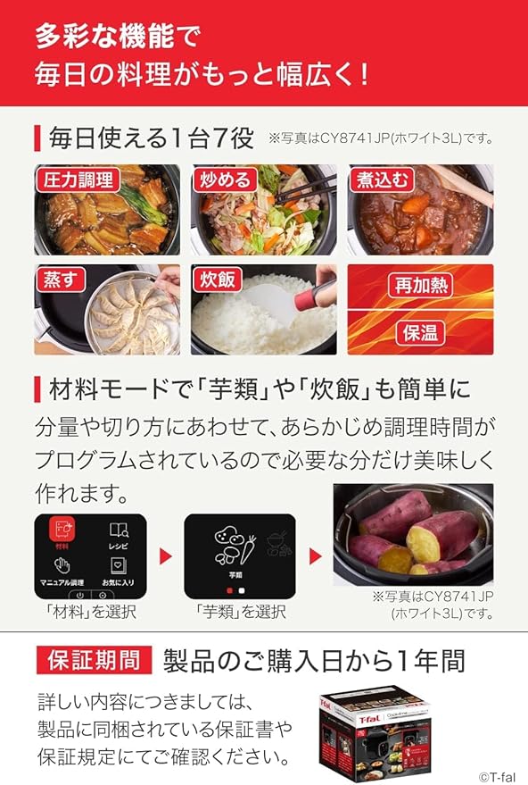ティファール 電気圧力鍋 3L 内蔵250レシピ 「クックフォーミー ホワイト」 圧力調理 1台7役 CY8741JP a