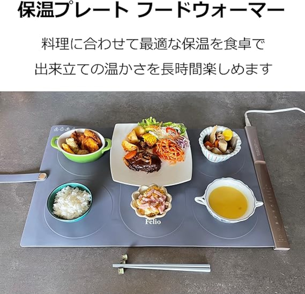 富士商 Felio 料理が冷めない 保温プレート フードウォーマー あったかプレート 卓Felio上 電気 60/80/100℃ 電気保温トレイ ホットプレート 鍋 皿 大判タイプ BWR02 a