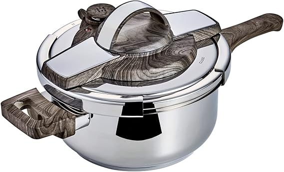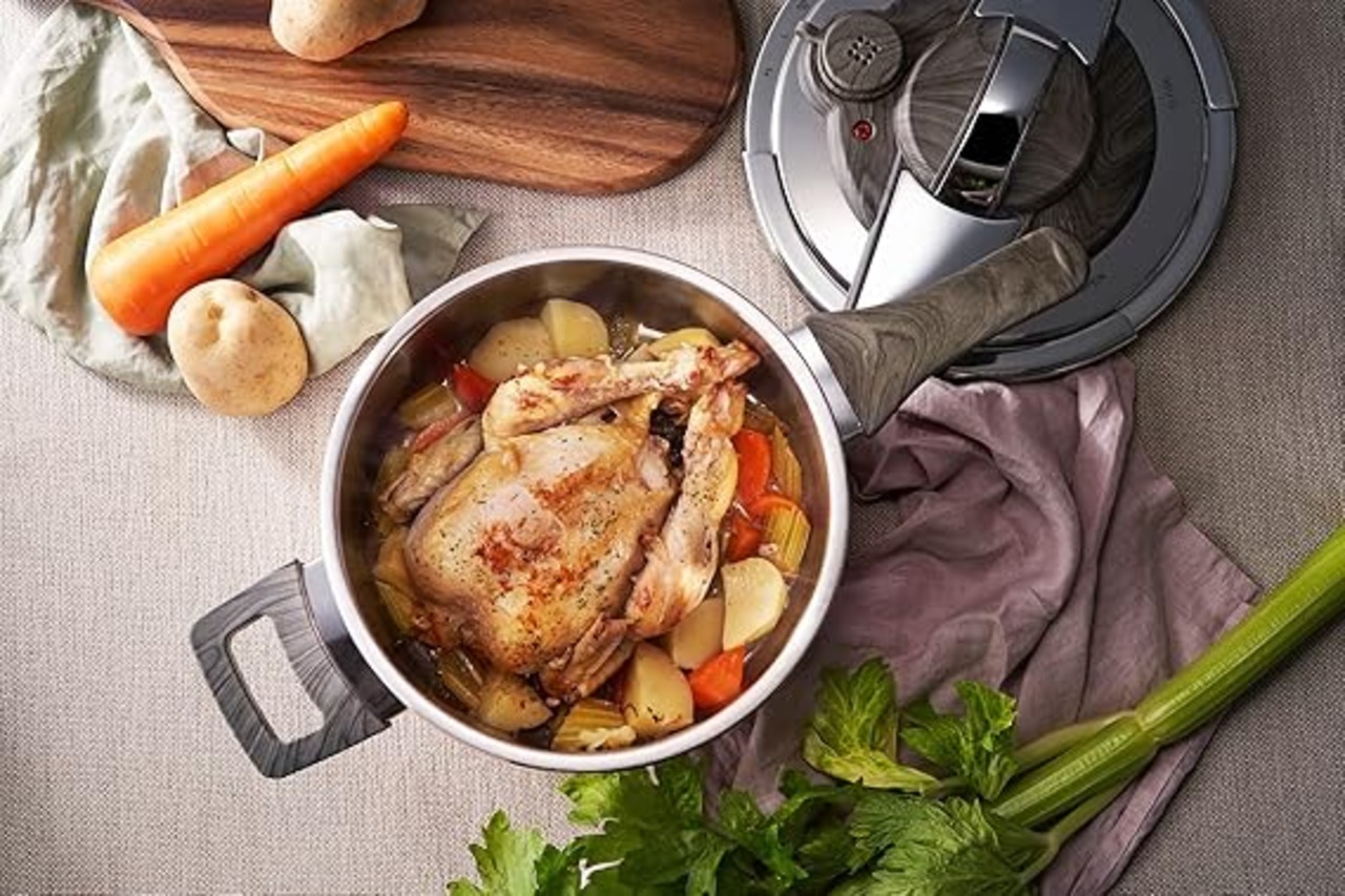 蓋が使いやすくて便利な圧力鍋。取っ手を回すだけで簡単に開閉できます。